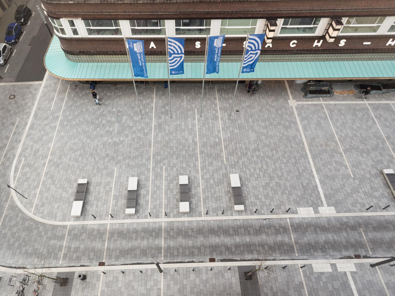 Am Hans-Sachs-Haus, Gelsenkirchen SCADA finerro, SCADA fino, Sitzbank fino, Sonderbordstein ferro
