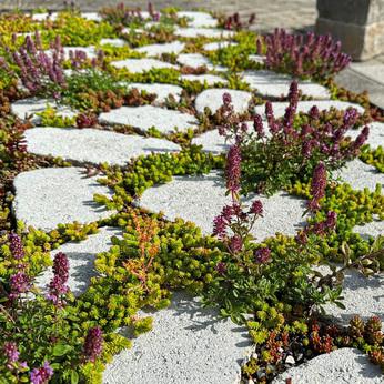 Begrünte Fugen tragen zur ökologischen Aufwertung städtischer Gebiete bei. Mit dem innovativen Abstandshalter-System des ARENA® Vegetationsfugensteins können nahtlose Übergänge mit flexiblen Fugenbreiten gestaltet werden.