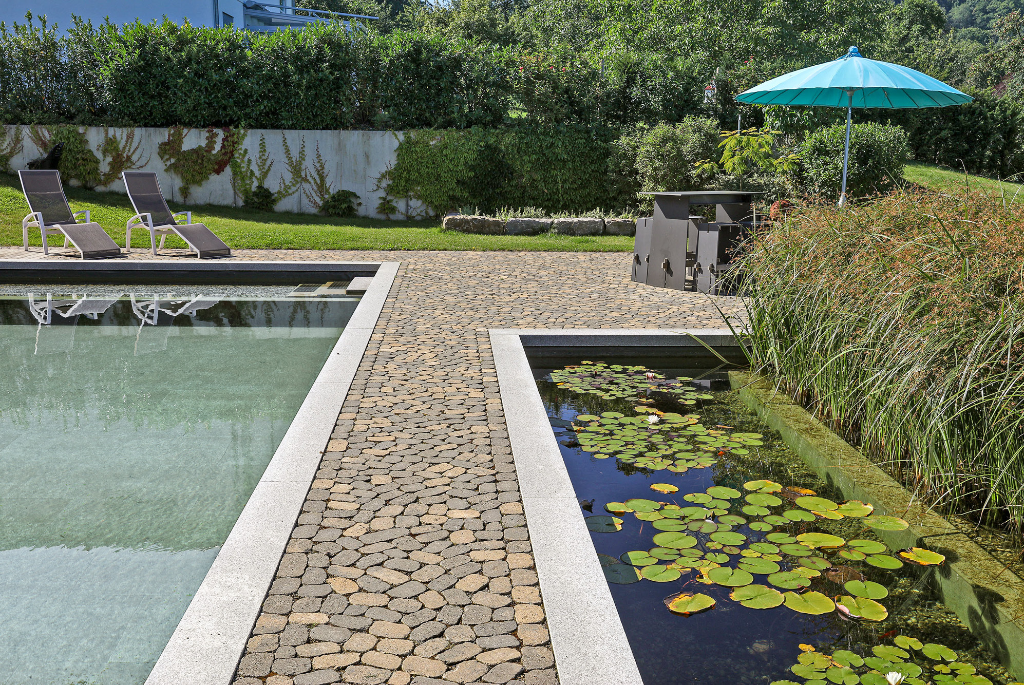 Der organisch geformte Pflasterstein mit seinen abgerundeten Formen, seinen variablen, abgestimmten Formaten in 8 oder 10 cm Dicke und seine vielfältigen Farben, bieten mit der »ungerichteten« Verlegung zahlreiche Kombinationsmöglichkeiten und ist so ein spannender und ästhetischer Interaktionspartner für moderne und zeitgenössische Architektur. ARENA passt dabei sowohl in ein natürliches wie auch in ein historisches Umfeld ideal.
