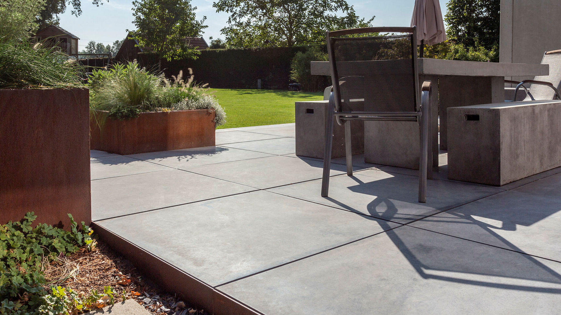 Cool, edel, chic – unsere Sichtbeton-Terrassenplatten im XXL-Format begeistern Freunde von Architektur und Design. Die meisterhaften Oberflächen mit den typischen Sichtbeton-Wolkenzeichnungen sind handgemacht mit Hightechbeton. Geeignet sind die 6 cm dicken Manufakturarbeiten für private und urbane Freiräume mit moderaten Belastungen.