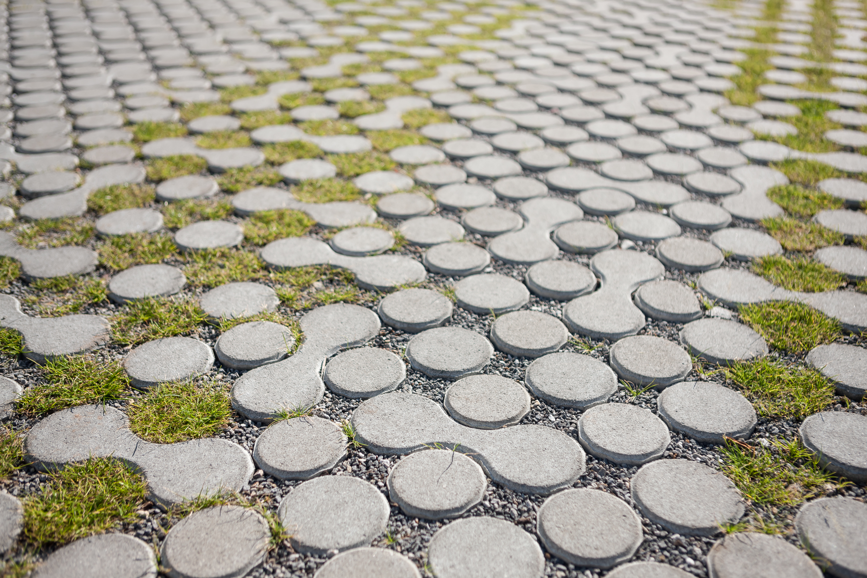 - sickerfähiges, begrünbares Pflastersystem aus gefügedichtem Beton