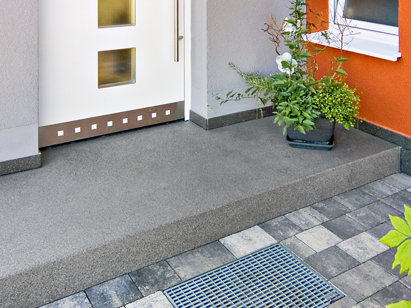 Der Auftritt wird garantiert nicht übersehen: Mit Naturstein verfeinert und sorgsam per Hand gestrahlt, reihen sich die Podestplatten nahtlos in das zeitlos schöne ferro-Sortiment ein. Wir bauen die Elemente individuell nach Formvorlage in Größen bis zu XXL.