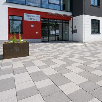 Platte, 60/45/12 cm, Grau, 875 m², Füllstein, Durchmesser 10,2 cm, Dicke 12 cm, Grau und Rot (Sonderfarbe), 11.570 Stück