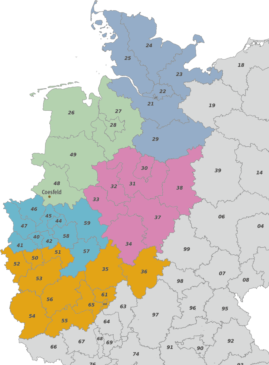 PLZ 35 – 36 | 50 – 56 | 60 – 61 | 65